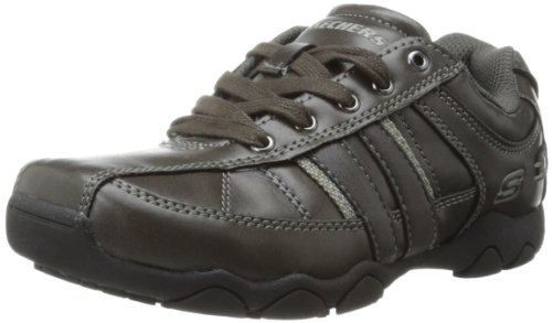 He\'ll be looking sharp and feeling great in these SKECHERSSmooth faux leather upper Easy care and durable Lace up dress casual comfort oxford design Stitching accents Relaxed Fit design for a roomier comfortable fit Flexible rubber high traction outsole