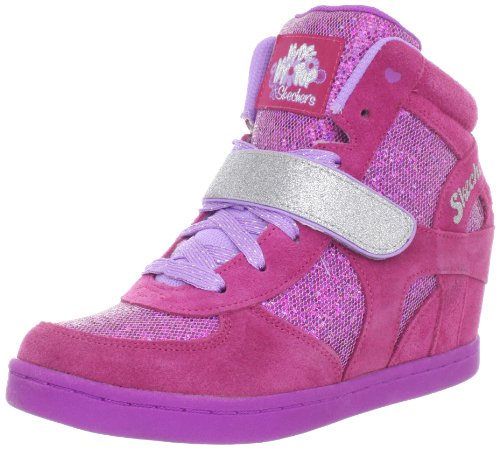 • Lift her spirits with this fun sneaker featuring a hidden wedge heel • Soft suede leather upper with glitter panels • Instep hook and loop closure • Padded collar and tongue • Stretch fabric topline • Shock-absorbing midsole • Traction rubber outsole • Clever hidden 2" wedge heel