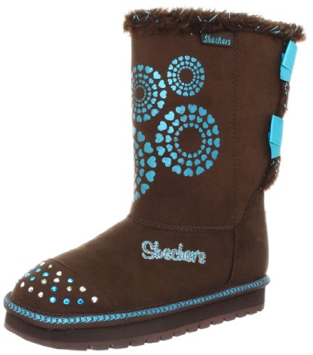 Shiny hearts and light-up sequins are sure to capture your little princess' attention in the Baby Bow Boot from Skechers. Featuring a soft microsuede upper, this boot is sure to keep Jack Frost at bay with a warm faux-fur lining and trim.